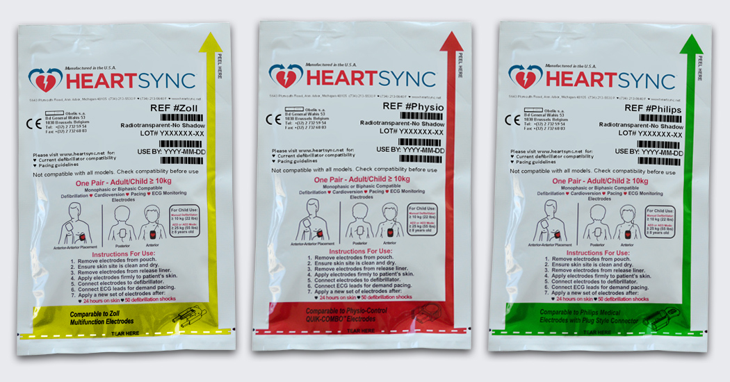 El código de color de los empaques de Heart Sync hace de la selección del electrodo correcto para el desfibrilador de su marca, una tarea sencilla.